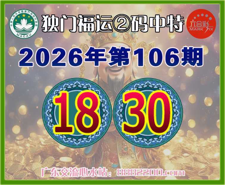106期:【独门福运】 ②码中特【18.30】开:00准